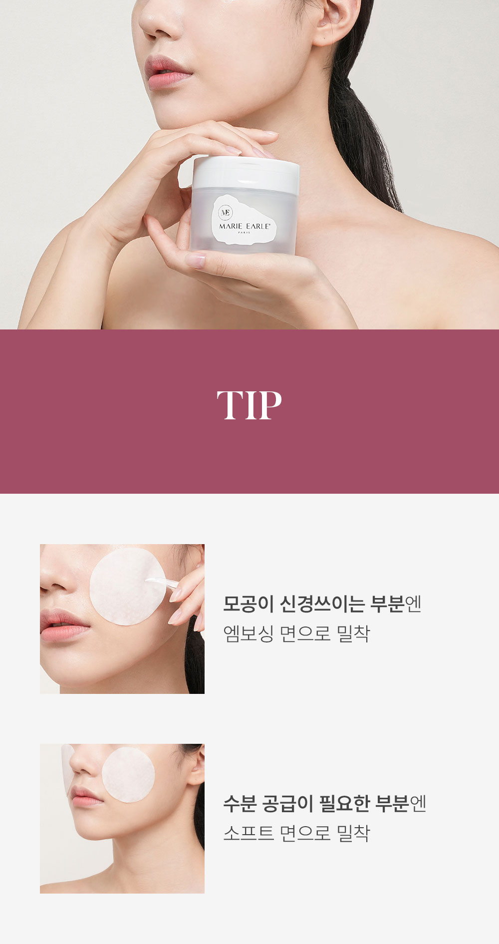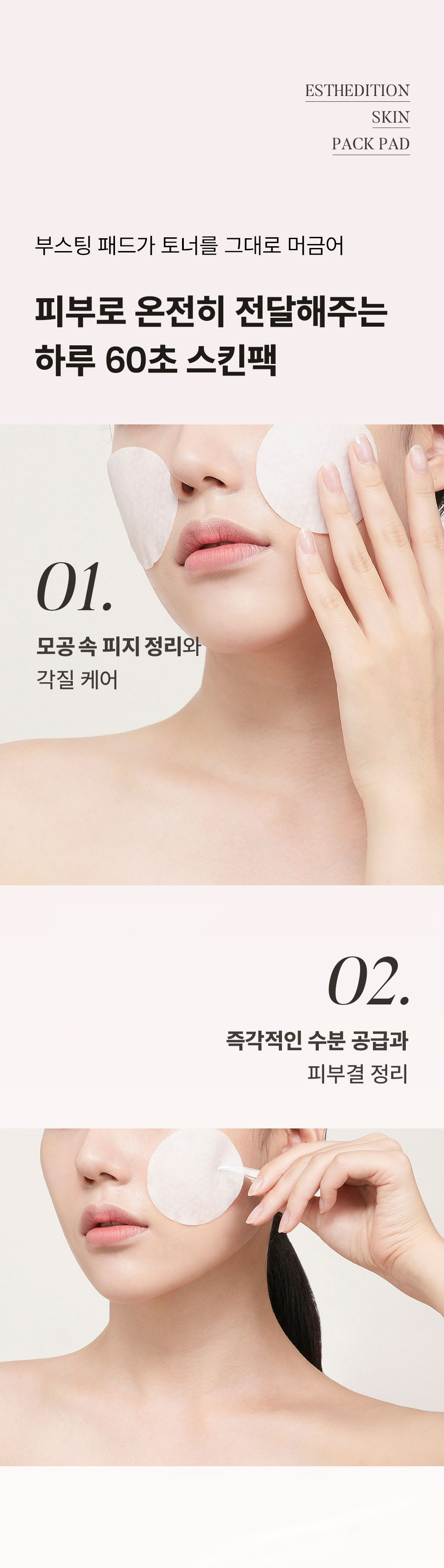 스킨팩 패드의 주원료인 목화솜을 모티브로 제작하였으며 60초 만으로도 간단하게 모공 정리와 수분 공급을 경험할 수 있고 사용자에게 보다 더 제품의 정보를 이해 도울 수 있도록 아이콘과 gif 영상 제작하여 디자인을 구현하였습니다.