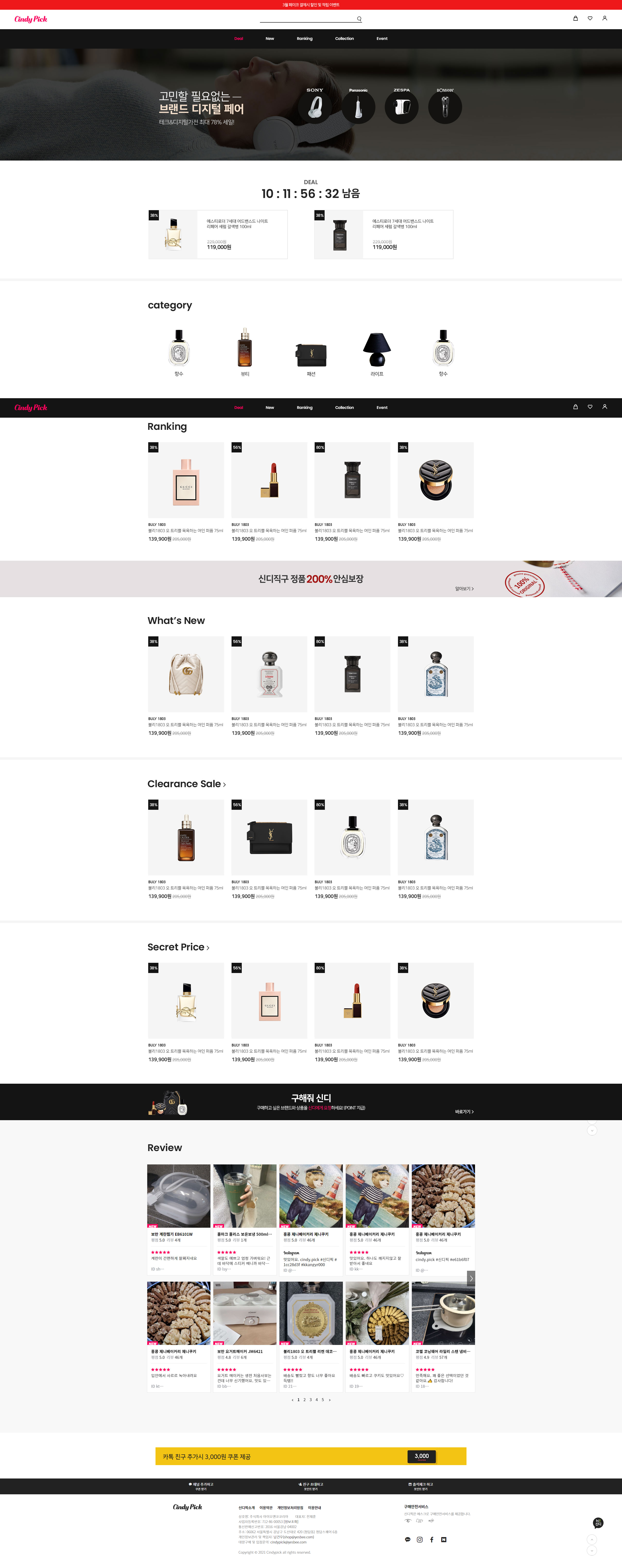 백화점, 면세점에서만 볼 수 있던 고급 브랜드 상품을 판매하고 있다는 전문적인 이커머스 쇼핑몰의 이미지로 다양한 이벤트 프로모션 방식으로 보다 더 사용자께 감각적으로 브랜드들의 상품을 전달하고자 제작하였습니다
