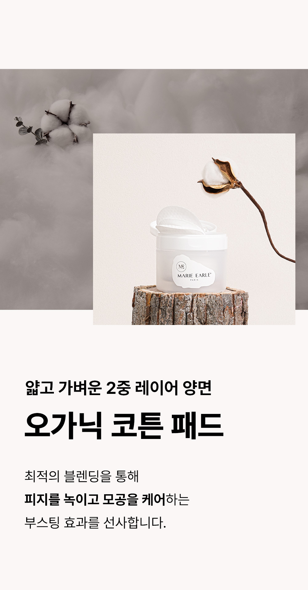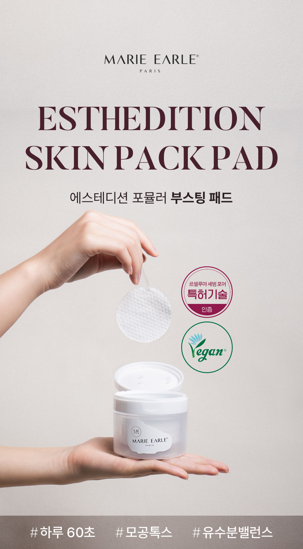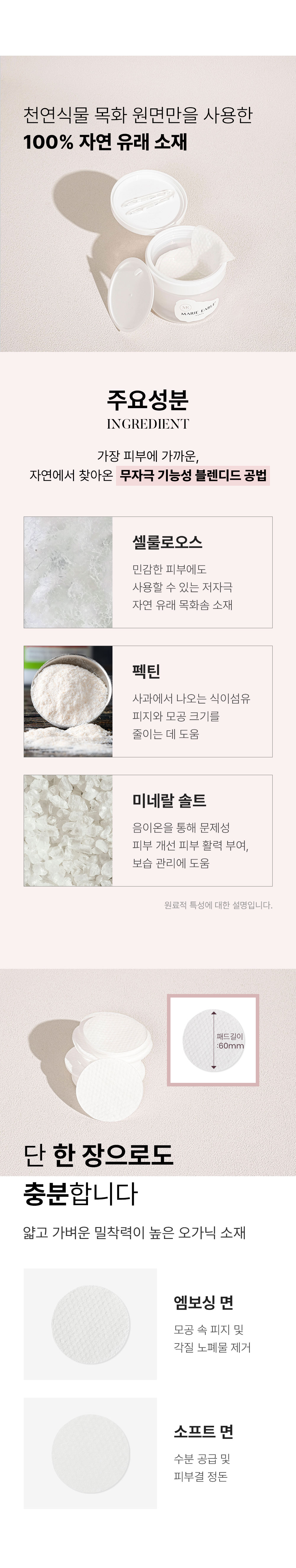 스킨팩 패드의 주원료인 목화솜을 모티브로 제작하였으며 60초 만으로도 간단하게 모공 정리와 수분 공급을 경험할 수 있고 사용자에게 보다 더 제품의 정보를 이해 도울 수 있도록 아이콘과 gif 영상 제작하여 디자인을 구현하였습니다.