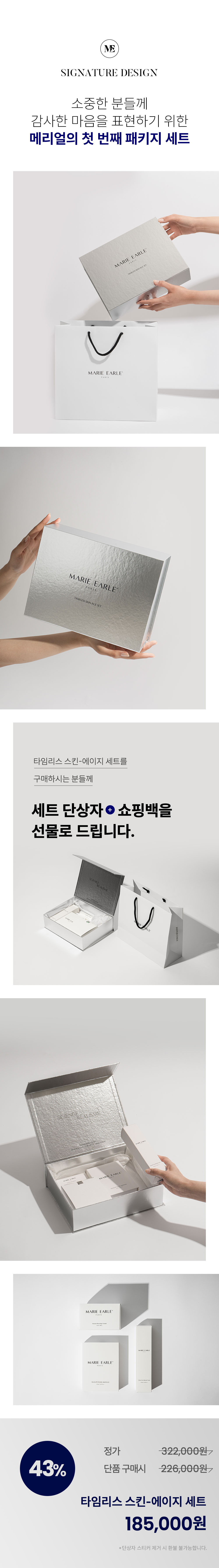 "세월이 흘러도 변치 않는 피부"라는 주제로 무채색의 깔끔한 컬러로 제품을 돋보이도록 구성했으며 40대 이상 중년 여성 타깃으로 디자인을 구성하였습니다.