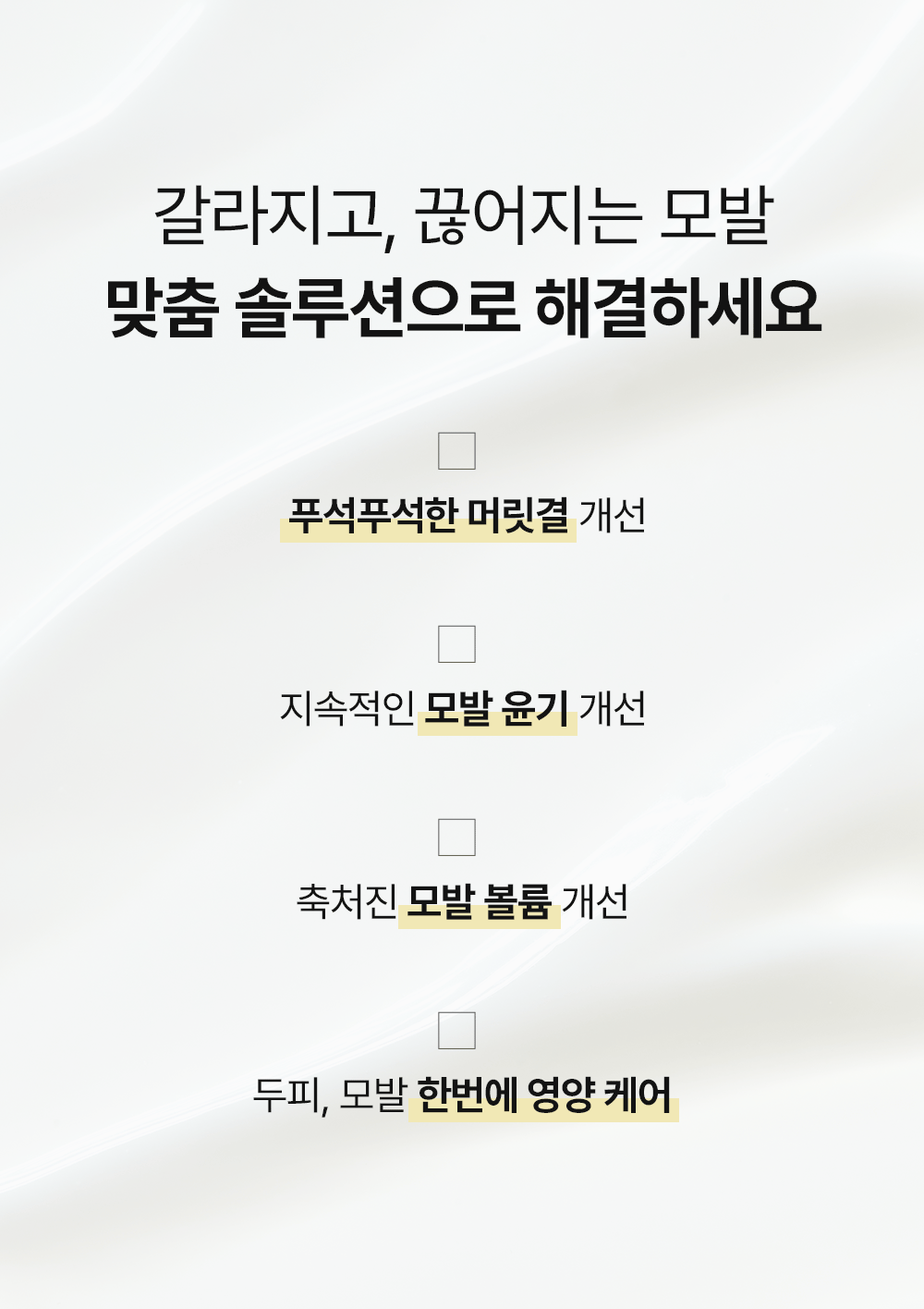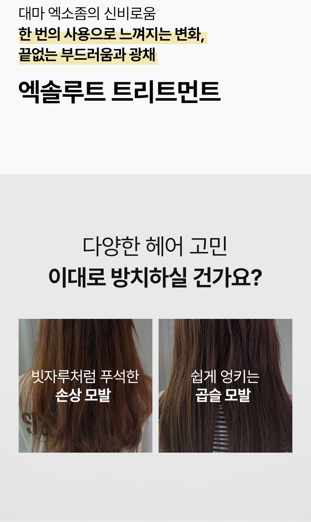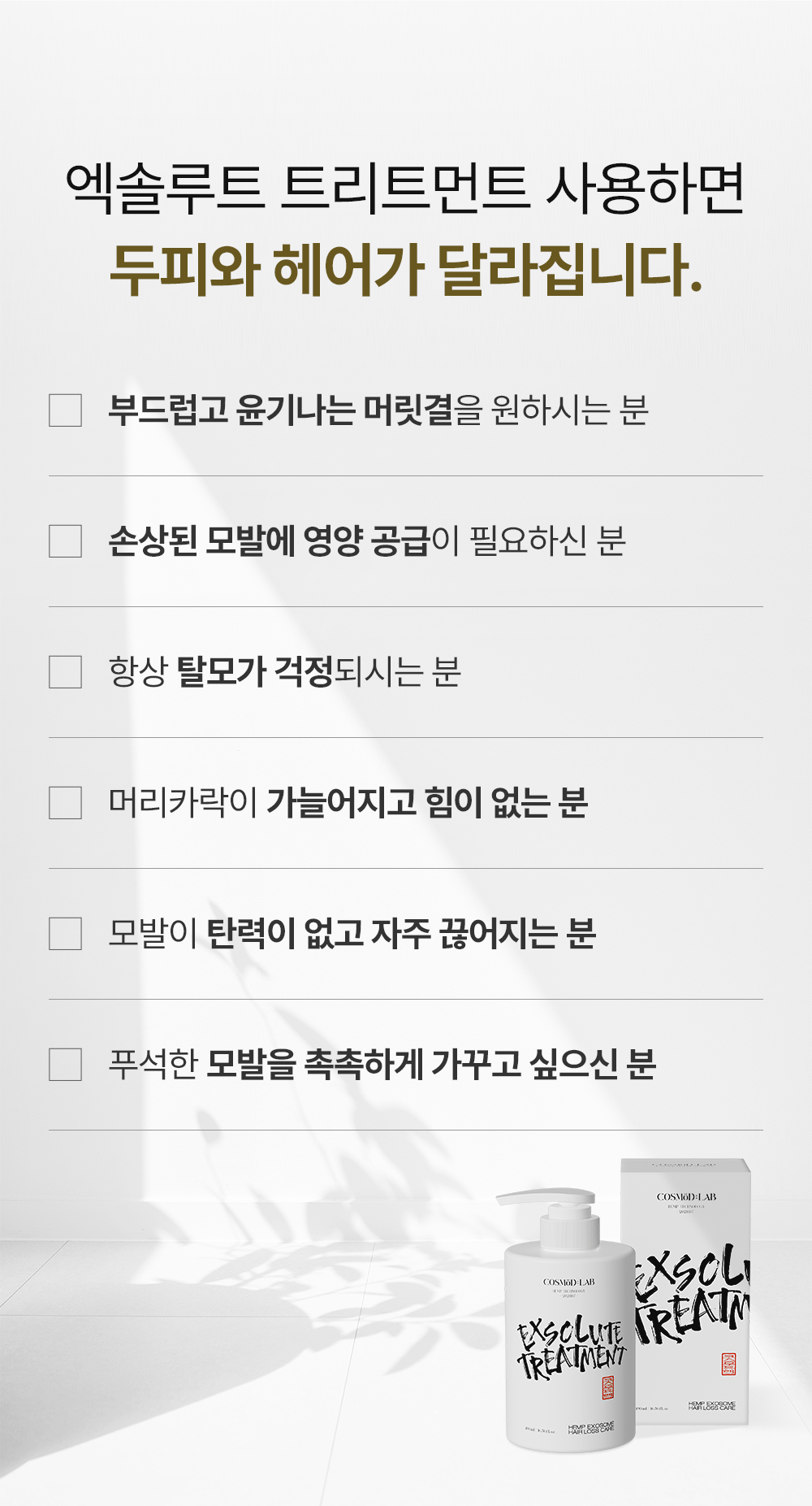 화장품 브랜드인 코스무드에서 새롭게 출시한 트리트먼트를 소개하는 페이지입니다. 세련됨과 고급스러움을 주면서 트린트먼트의 특징을 살려 사용자가 한눈에 쉽게 정보를 알 수 있게 디자인 제작하였습니다.