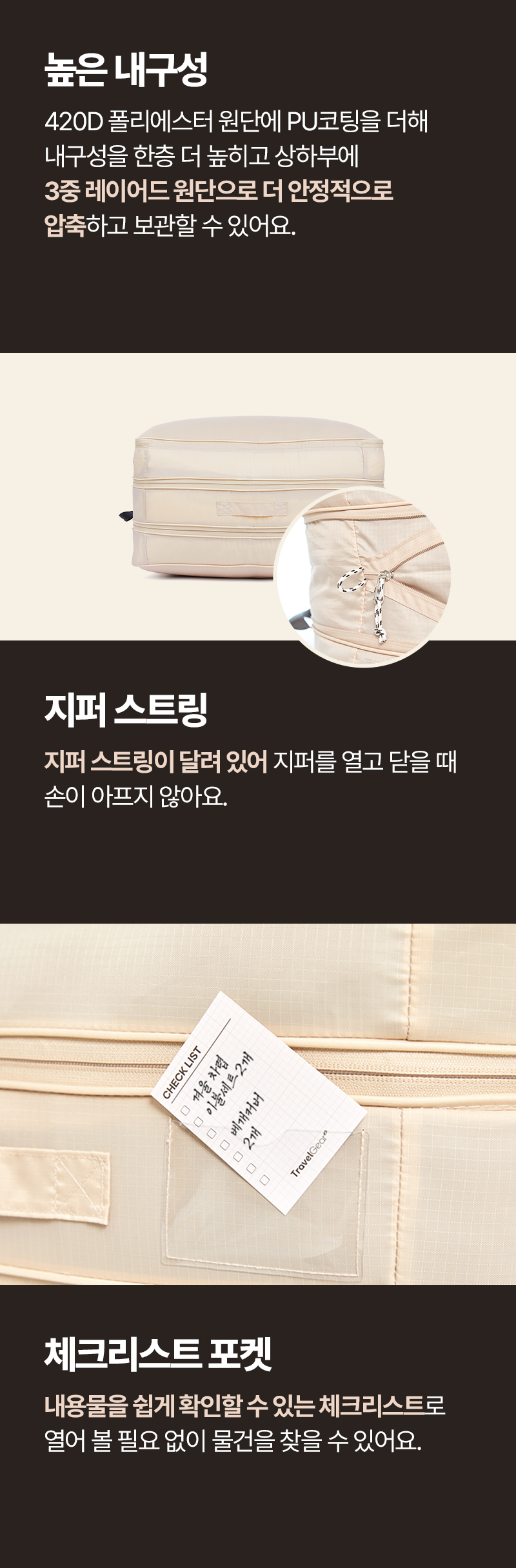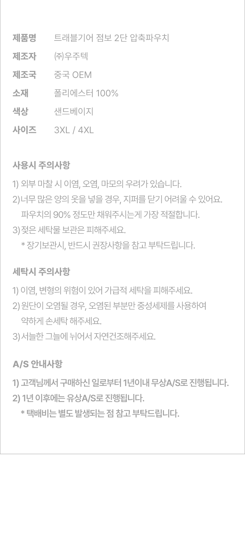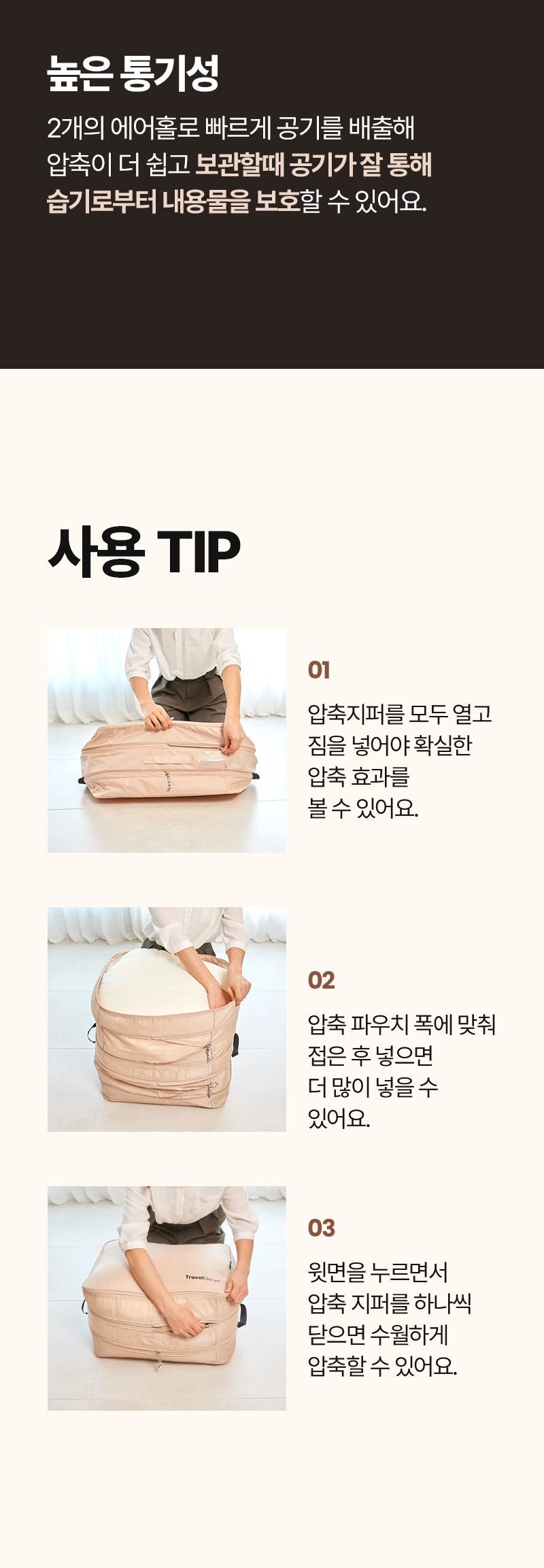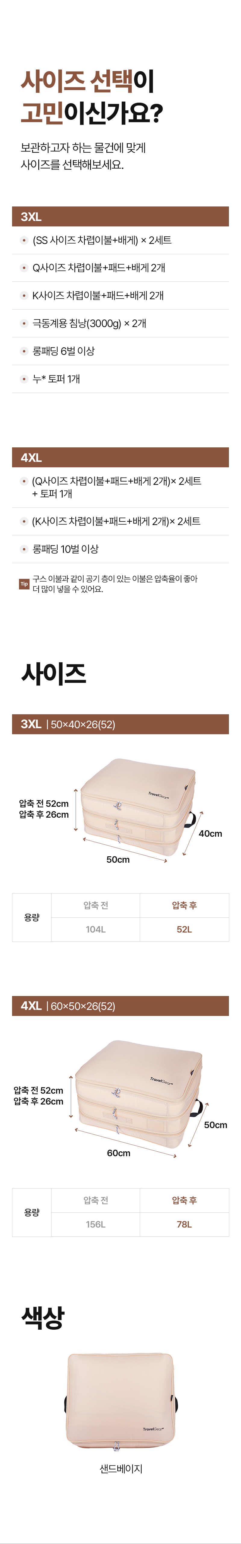 이불 압축 파우치는 옷장 내 부피를 최소화하고, 2단 압축 구조를 통해 공간 활용도를 극대화하는 제품입니다. 대형 사이즈로 겨울 이불과 두꺼운 의류까지 효율적으로 정리할 수 있다는 점이 핵심 강점입니다. 본 프로젝트에서는 이러한 제품의 강점을 고객이 직관적으로 인지할 수 있도록 단순한 시각 디자인을 넘어 정보 구조 설계 단계부터 참여했습니다. 별도의 기획안을 구성하여 기획자와 협업하였으며, 문제 제시 → 공간 절약 효과 강조 → 2단 압축 차별성 → 대형 수납력 시각화의 흐름으로 상세페이지 전체 구조를 설계했습니다. 또한 기존 제품 이미지의 퀄리티가 낮아 설득력이 부족한 상황이었기 때문에, 합성 및 리터칭 작업을 통해 사용 맥락을 보완하고 제품 완성도를 개선했습니다. 그 결과 시각적 신뢰도를 높이고, 구매 설득력을 강화할 수 있었습니다.